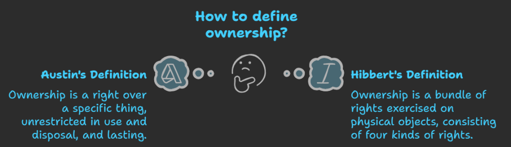 According to Austin: “Ownership is a right over a determinate thing indefinite in the point of user, Unrestricted in point of disposition, and ultimate in point of duration.”